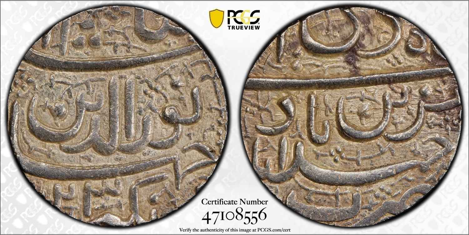 1614 India Mughal Empire Ahmadabad Silver Rupee Coin PCGS AU 58