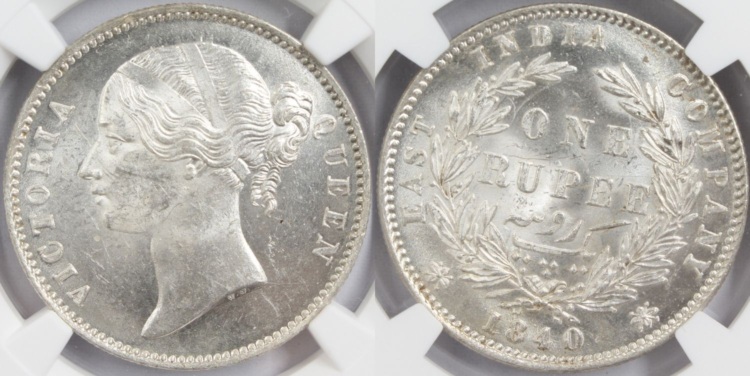 1840 India (C or B) Silver Rupee Coin NGC MS 63