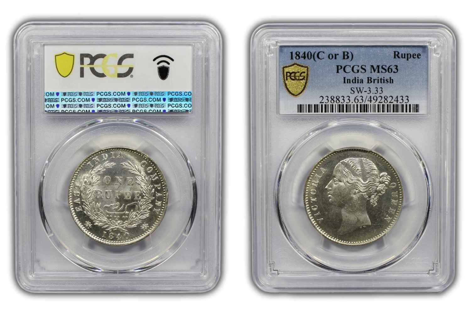 1840 India (C or B) Silver Rupee Coin PCGS MS 63