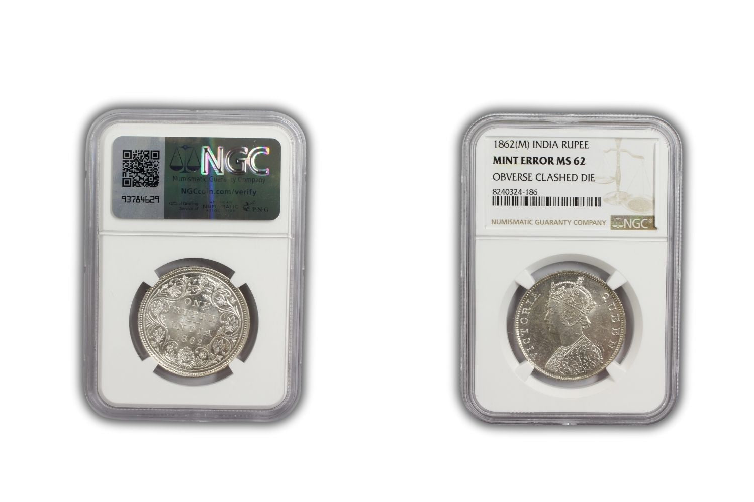 1862 M British India Rupee MINT ERROR Coin NGC MS62