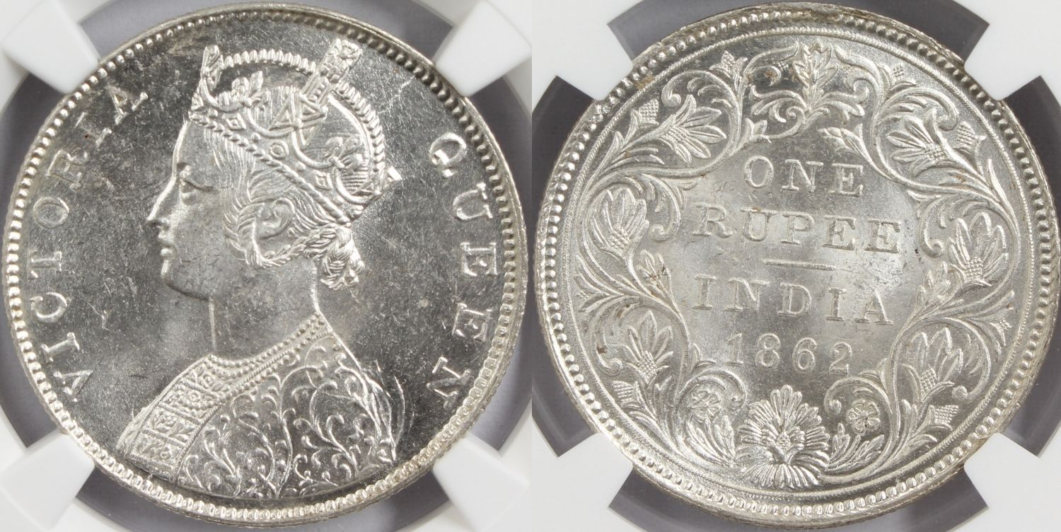 1862 M British India Rupee MINT ERROR Coin NGC MS62