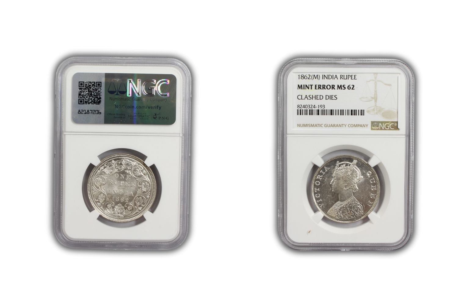 1862 M British India Rupee MINT ERROR Coin NGC MS62