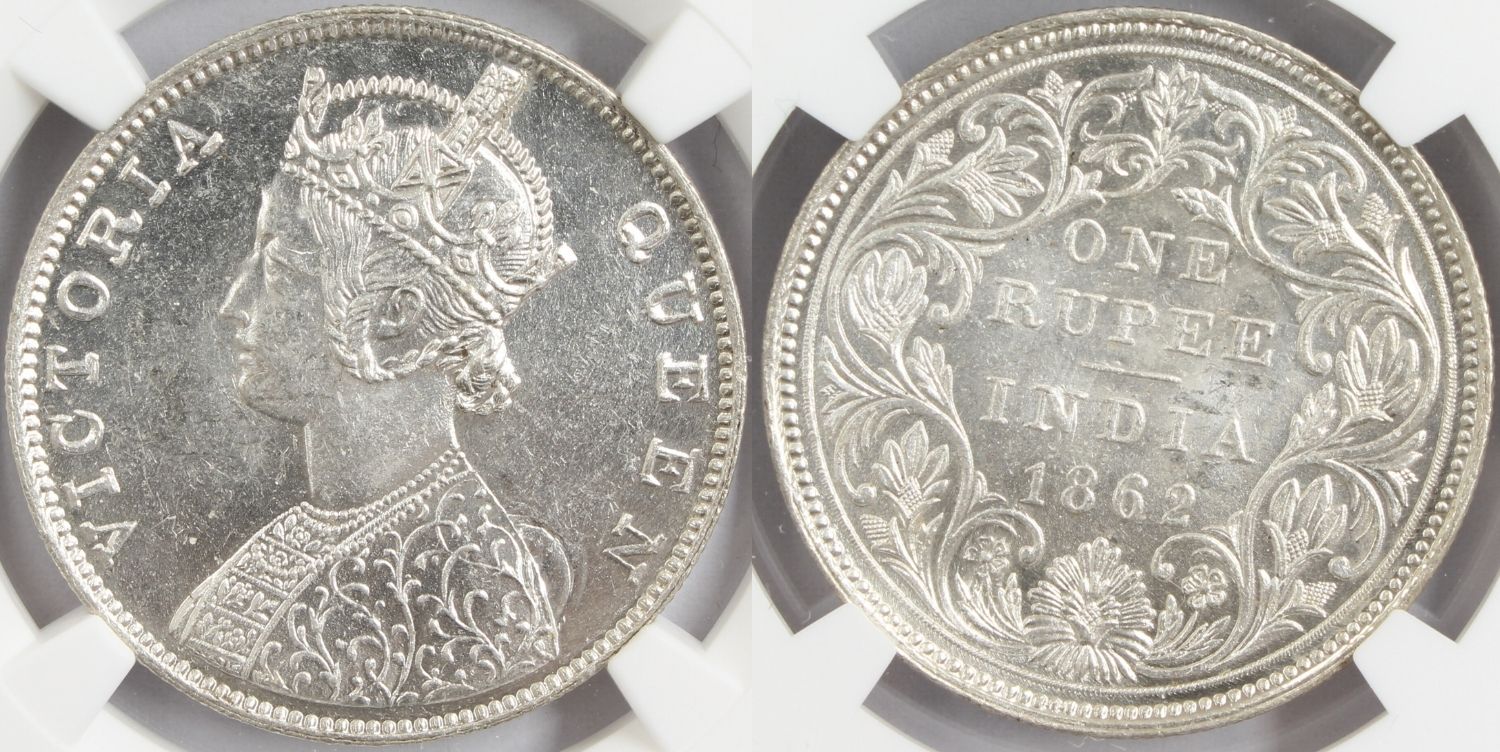 1862 M British India Rupee MINT ERROR Coin NGC MS63