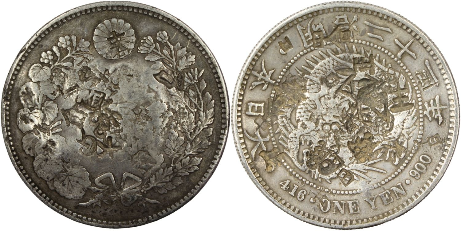 1890(M23) Japan Silver 1 Yen Coin CHOPMARKS