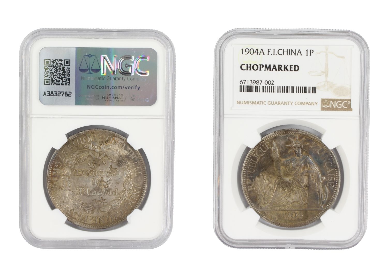 1904A French Indo China 1 Piastre Coin NGC Chopmarked