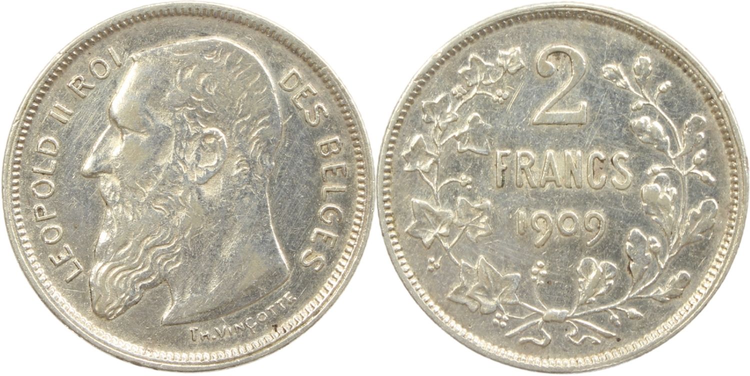 1909 Belgium 2 Francs Coin Details – Cleaned