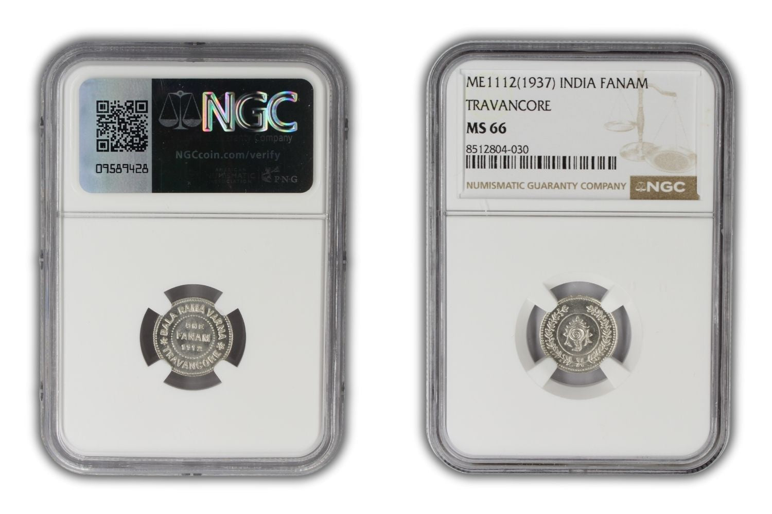 1937 (ME1112) India Silver Fanam Travancore Princely State Coin NGC MS66