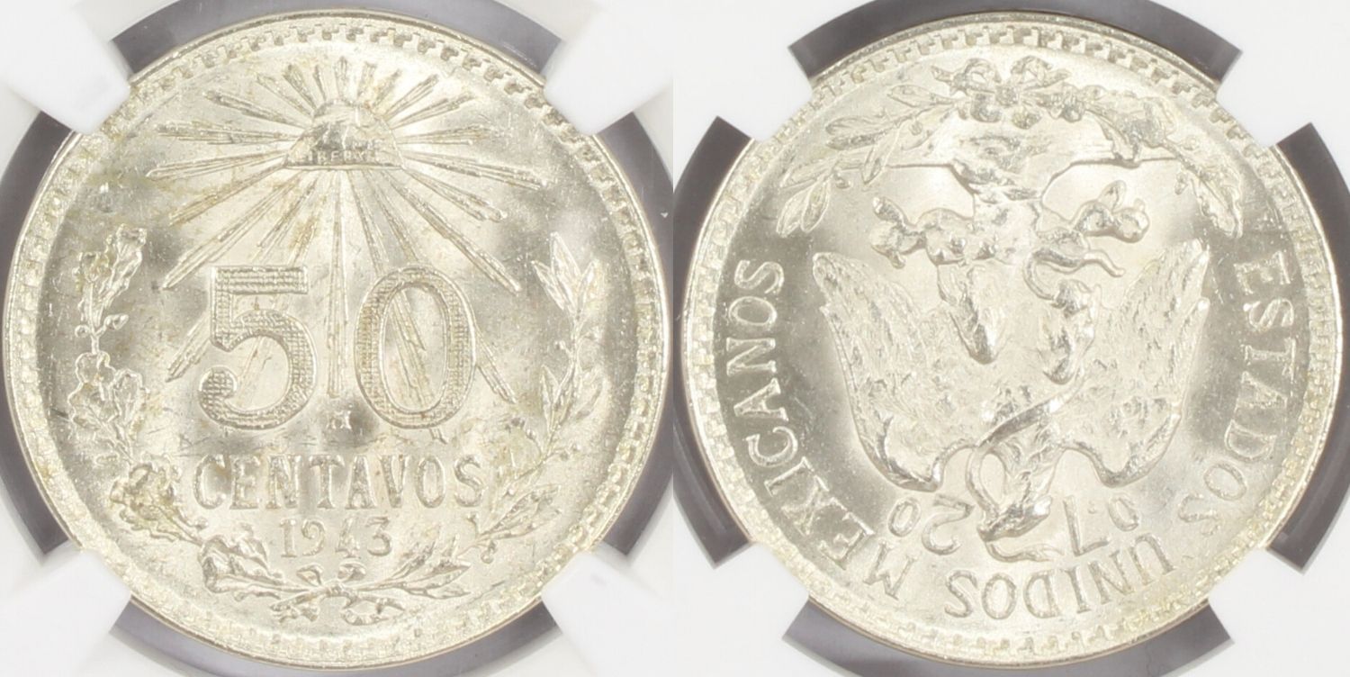 1943M Mexico 50 Centavos Coin NGC MS 66