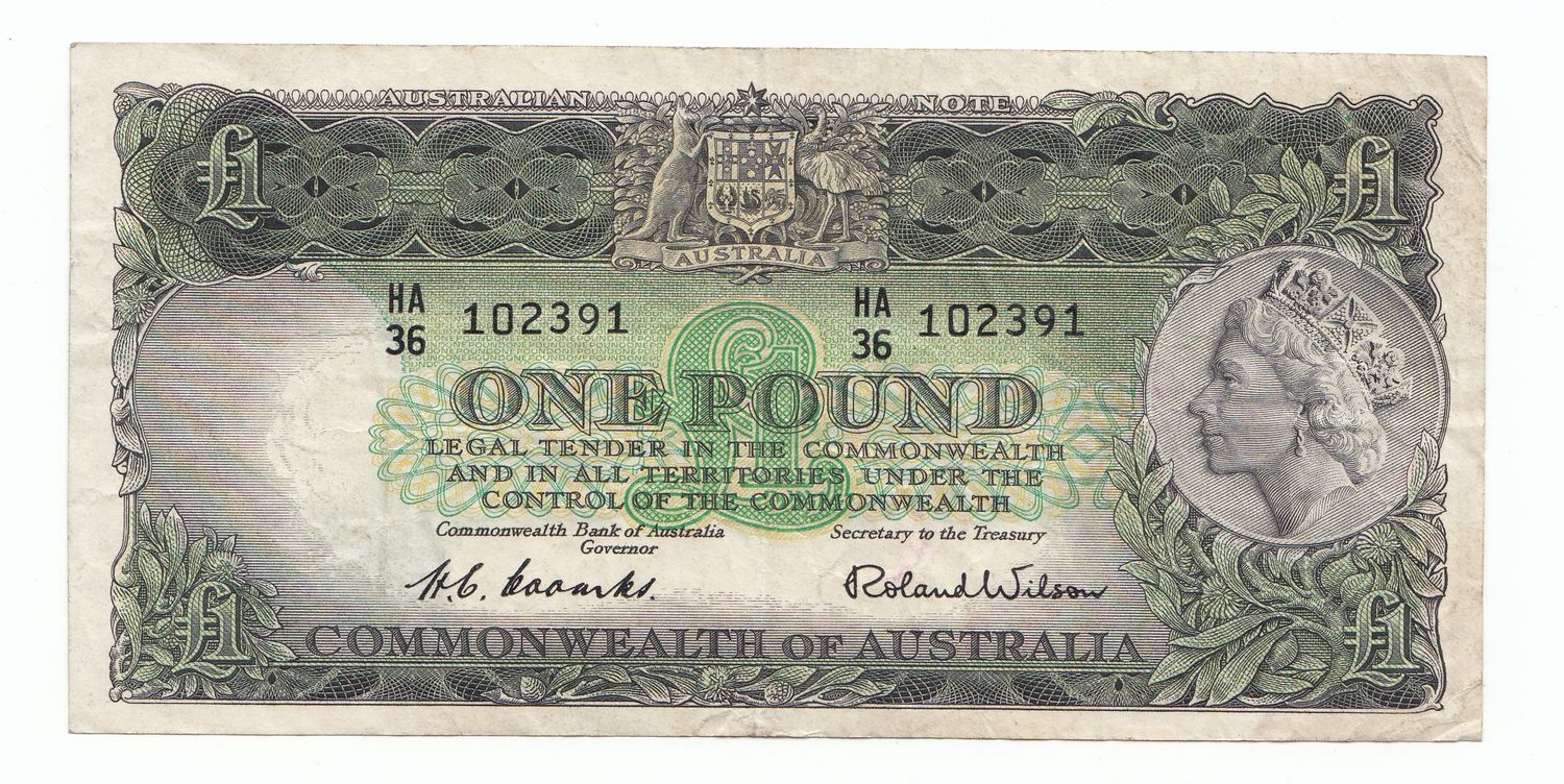 1953 Australia Coombs Wilson COMMONWEALTH BANK 1 Pound Note VF – gVF