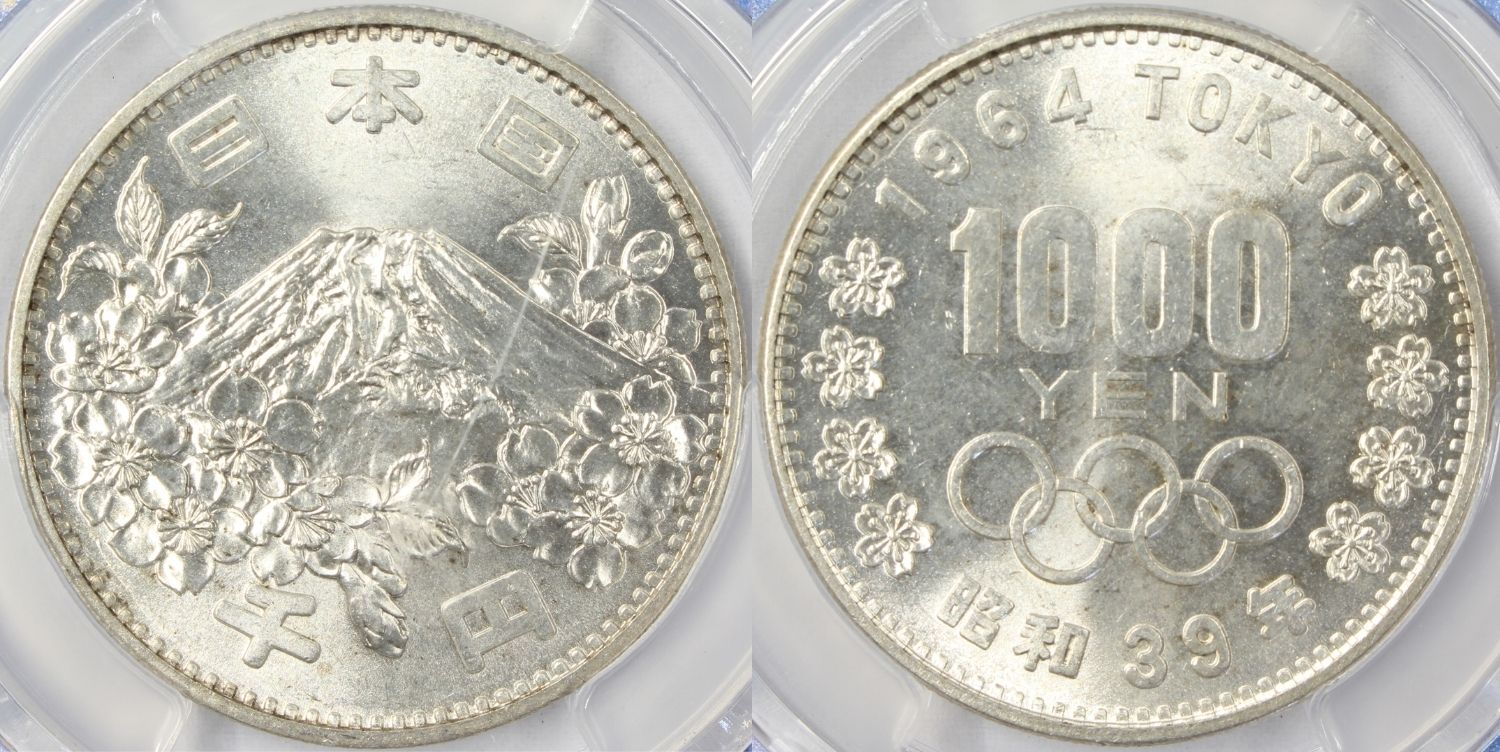 1964 Japan 1000 Yen Silver Coin Olympics PCGS MS63 NAGOYA City Special Label