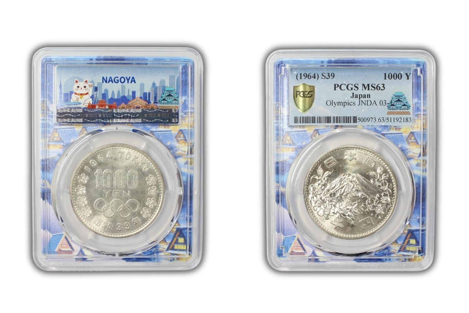 1964 Japan 1000 Yen Silver Coin Olympics PCGS MS63 NAGOYA City Special Label