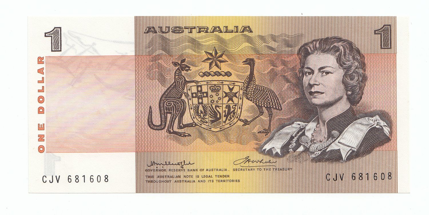 1976 Australia Knight Wheeler SIDE THREAD $1 Note UNC