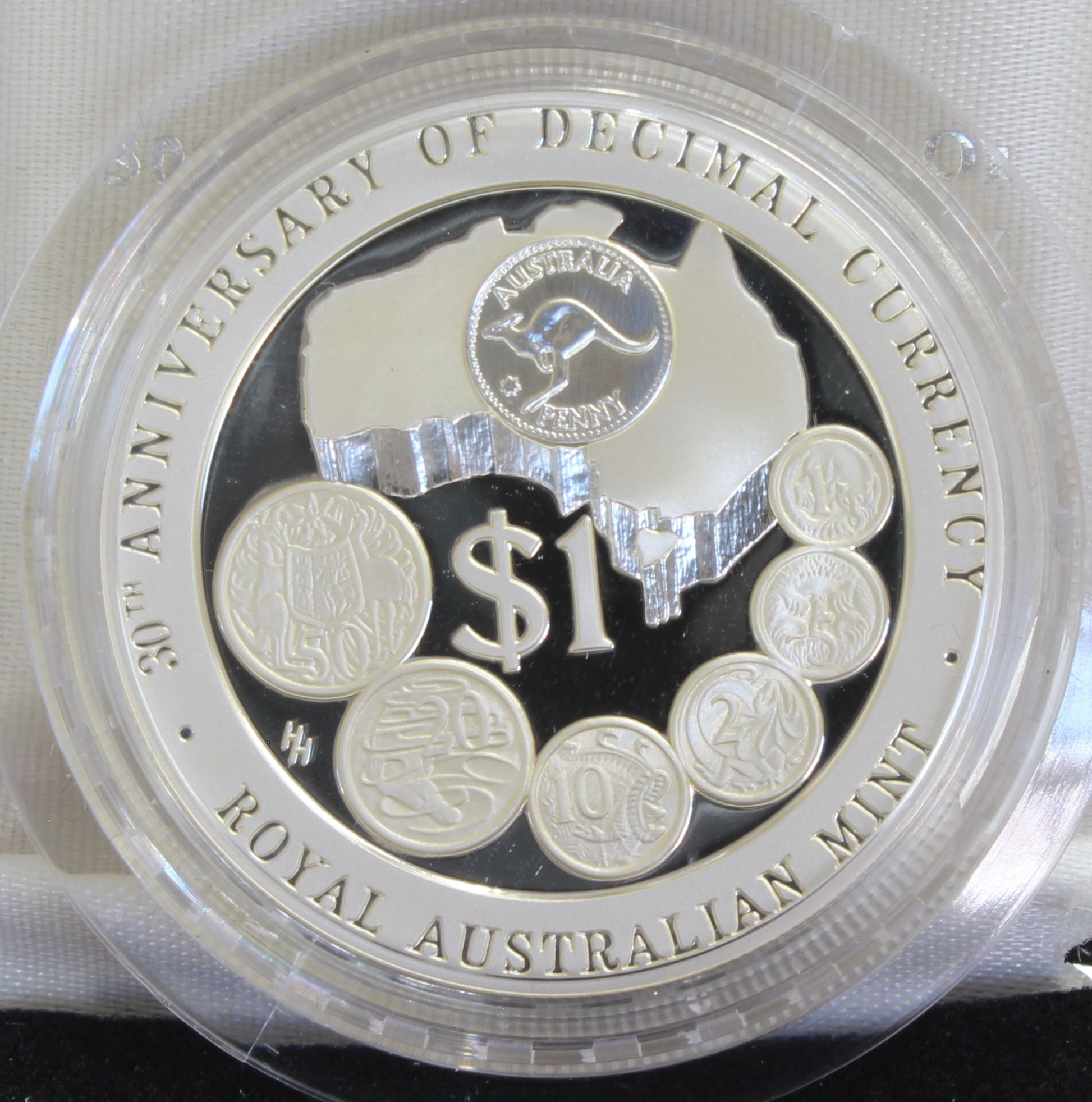 1996 Australia $1 Anniversary of Decimal Currency 1 Oz Silver Proof Coin