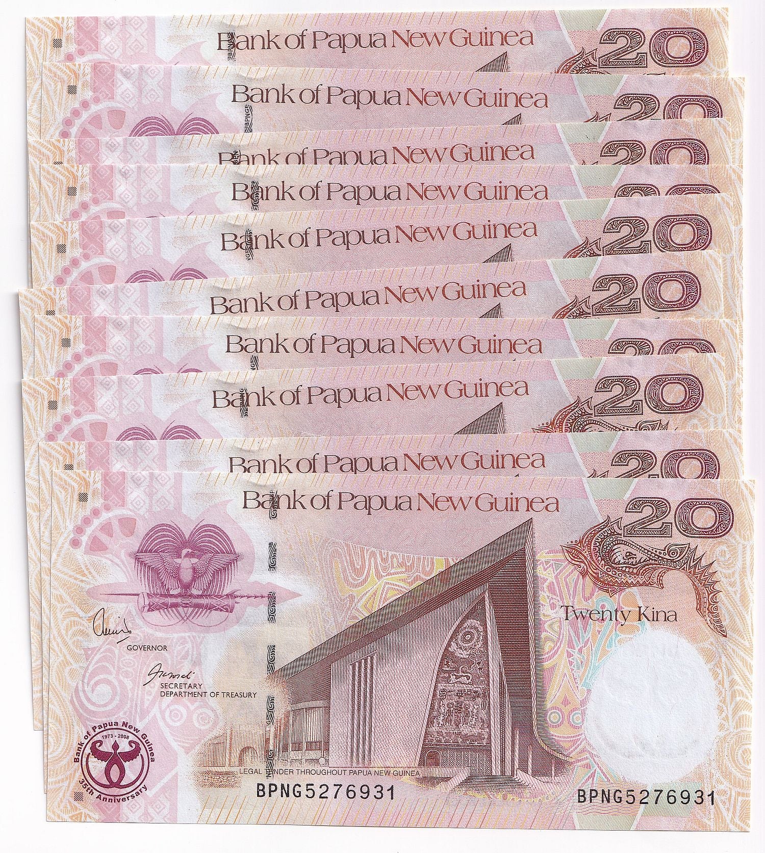 2008 Papua New Guinea 20 Kina P36a-UNC x 10 Pieces