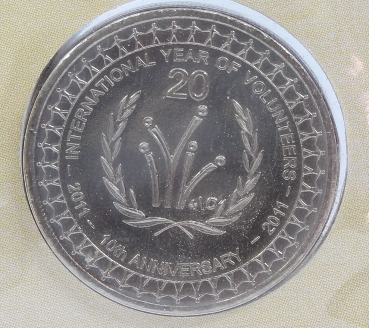 2. 2011 Australia $1 International Year of Volunteers Coin On Card.