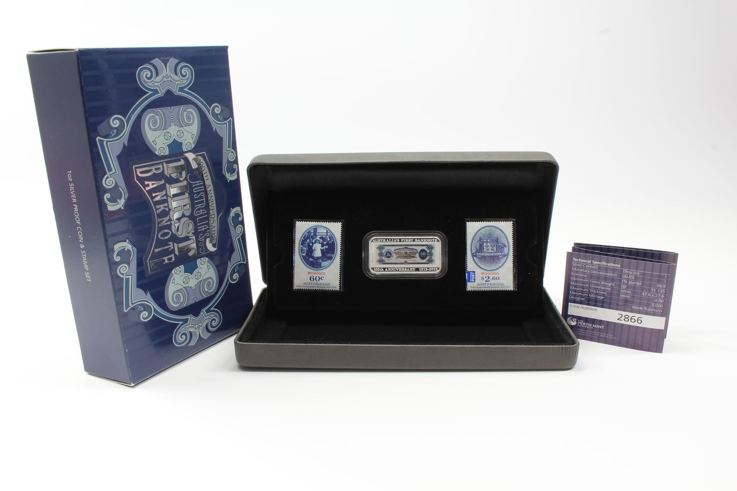 2013 Australia 100Th Anniversary First Banknote 1 Oz Silver Proof Coin & Stamp