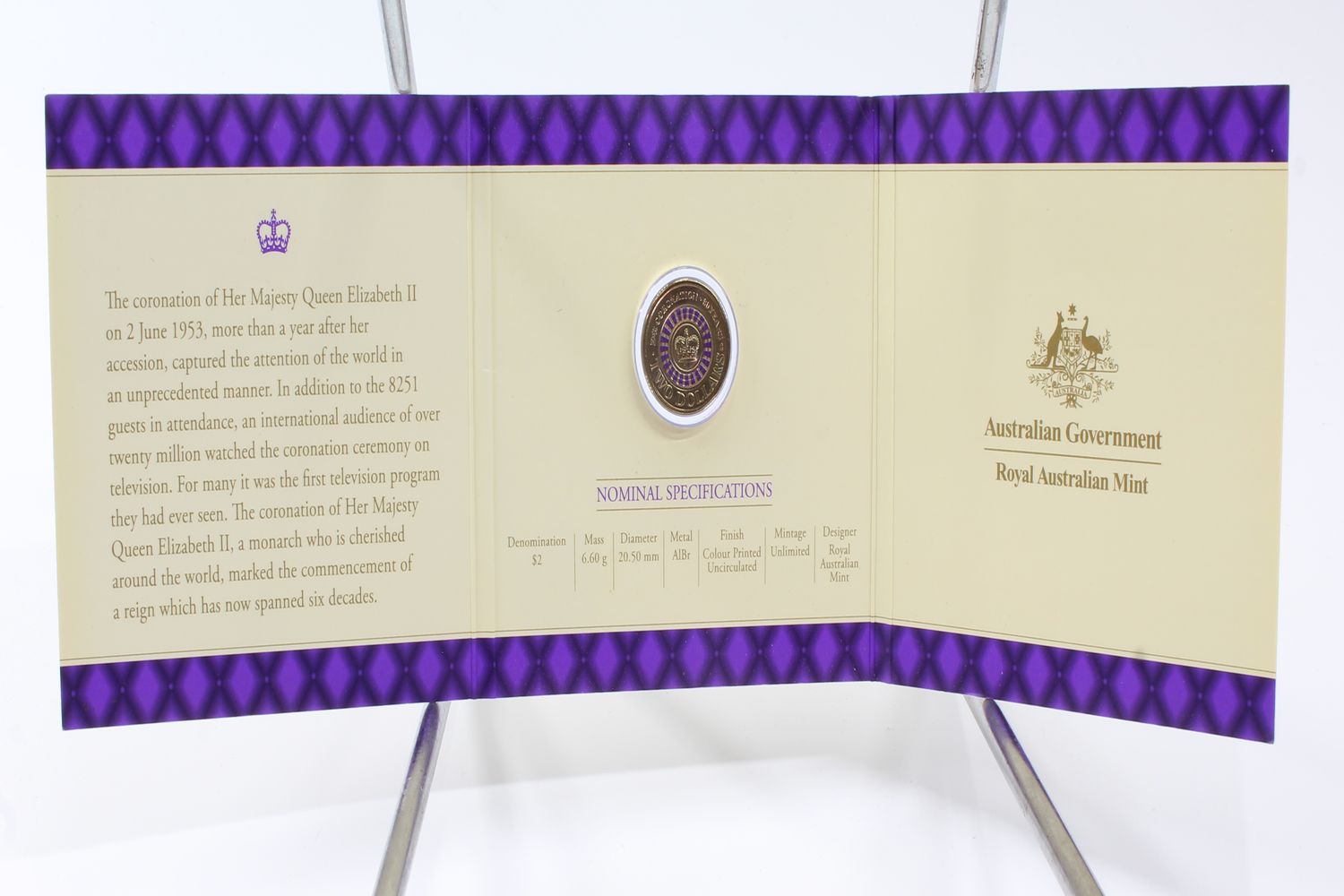 2013 Australia $2 60th Anniversary Queen Coronation Purple Coloured Coin On Card