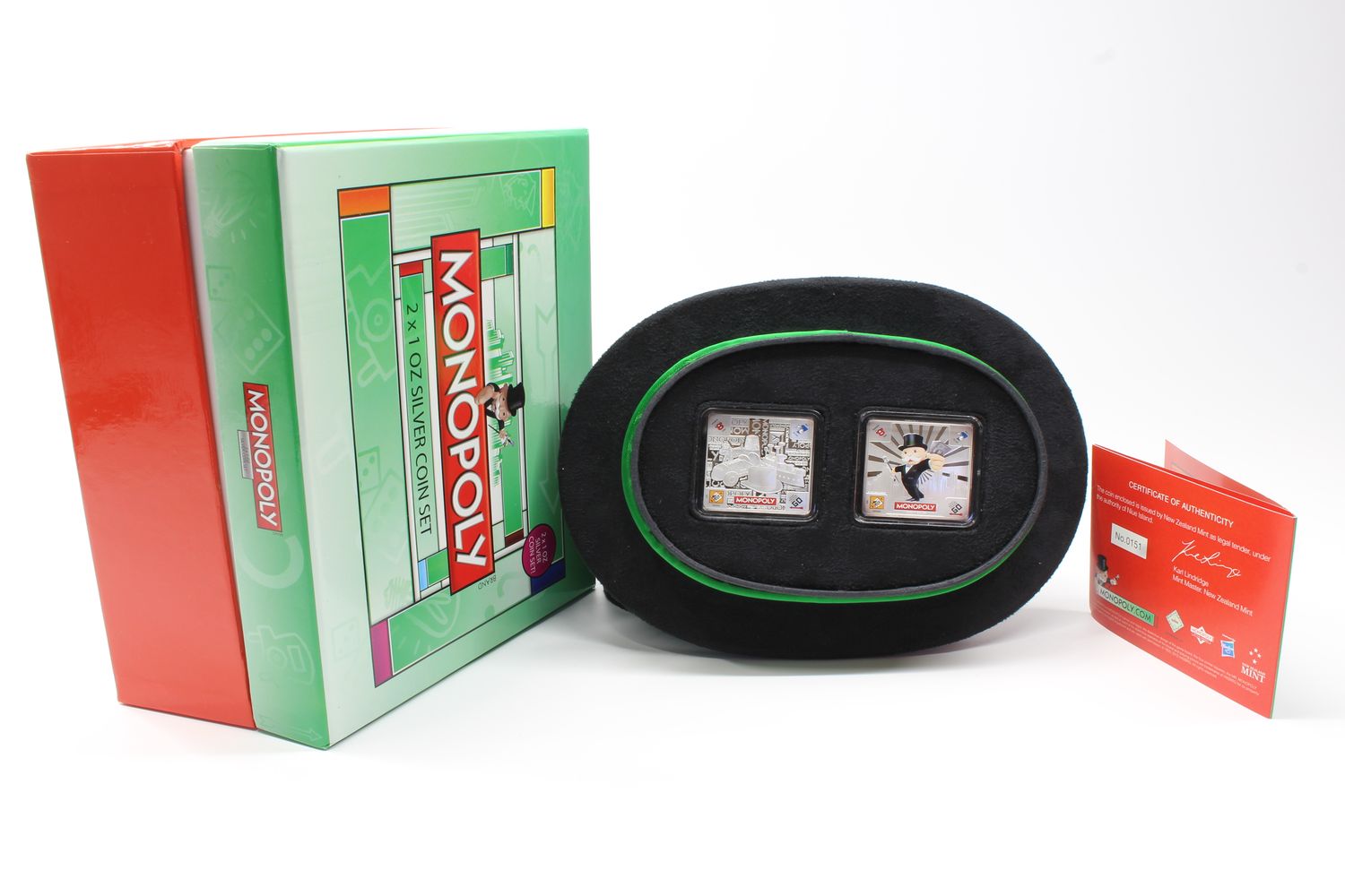 2013 Niue Monopoly 2x 1oz Silver Coin Set New Zealand Mint Hasbro TopHat Display