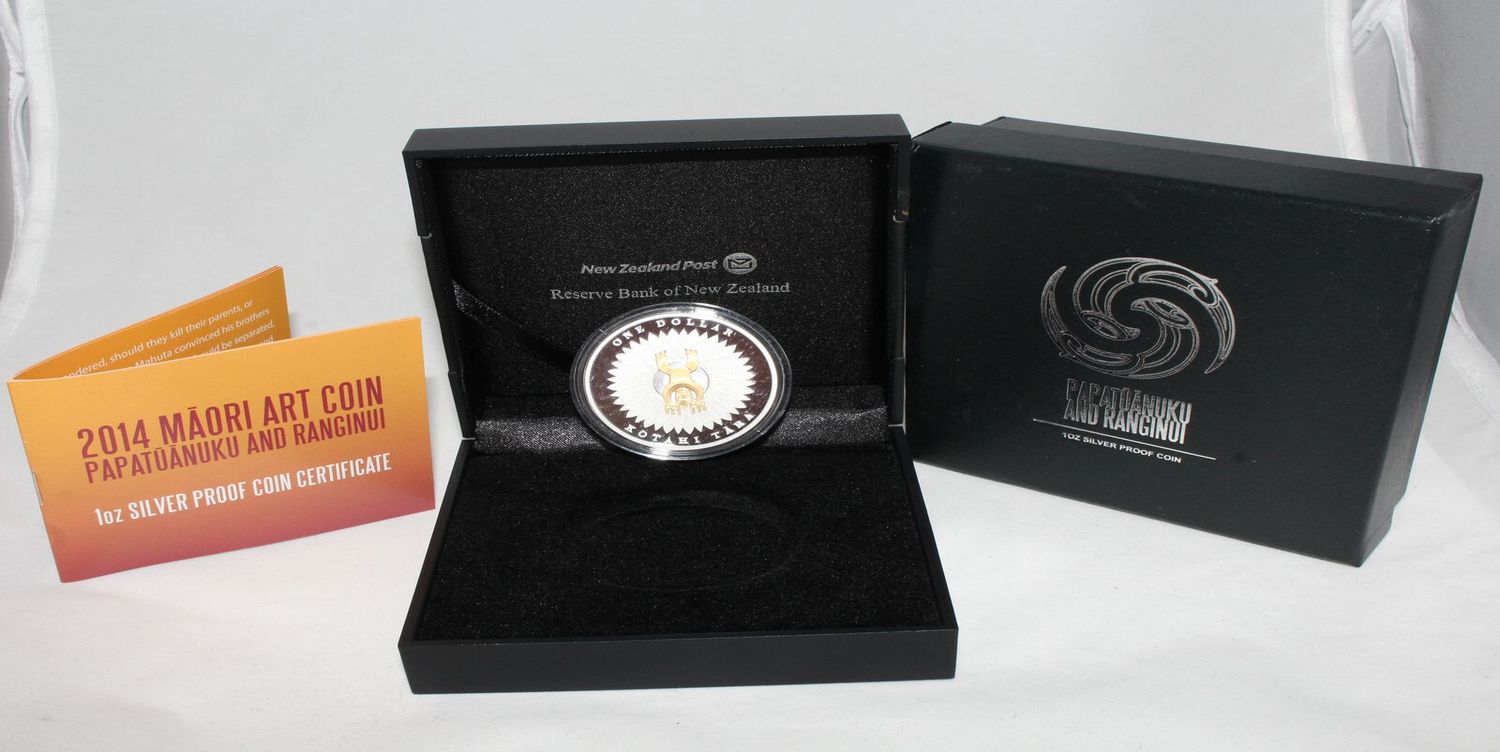 2014 New Zealand Silver 1 Oz 999 Papatuanuku Ranginui $1 Proof Gold Plated Coin
