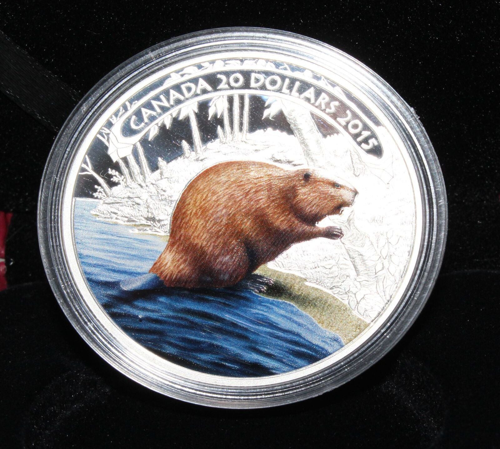 2015 Canada Silver 1 Oz 999 Beaver at Work $20 Proof Colored Coin