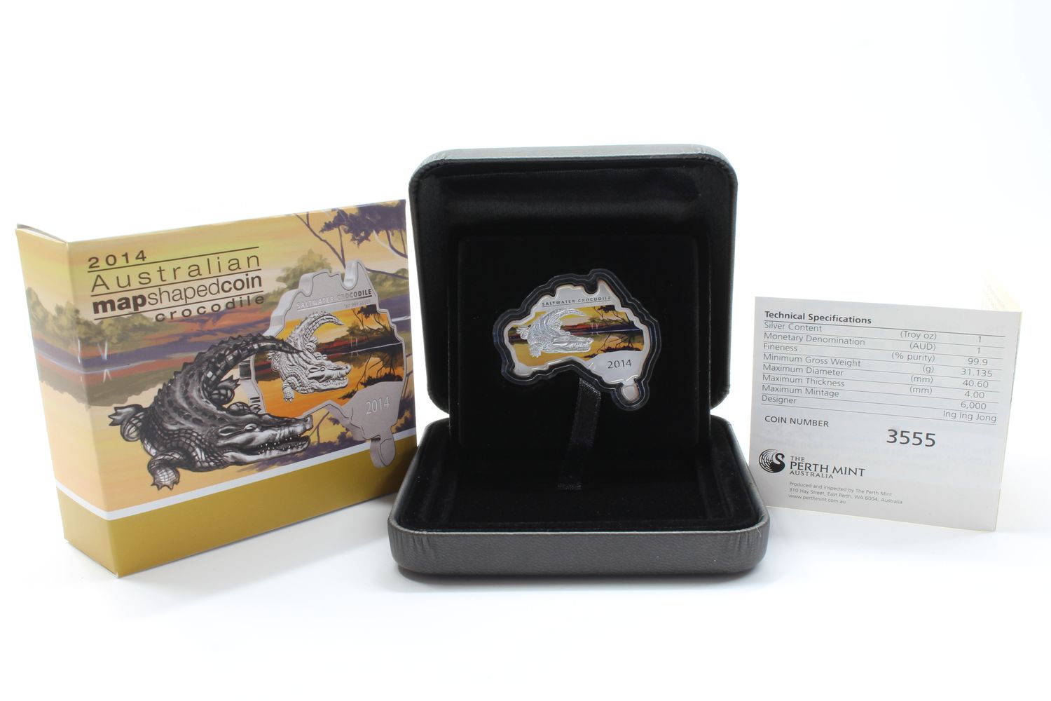 Australia 2014 $1 Crocodile 1 Oz Map Shaped Coin