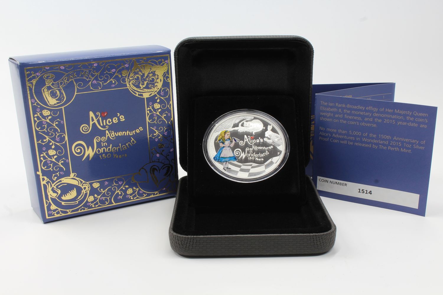 Tuvalu 2015 Alice Adventures in Wonderland Silver 1 Oz $1 Proof Coin 150 Years